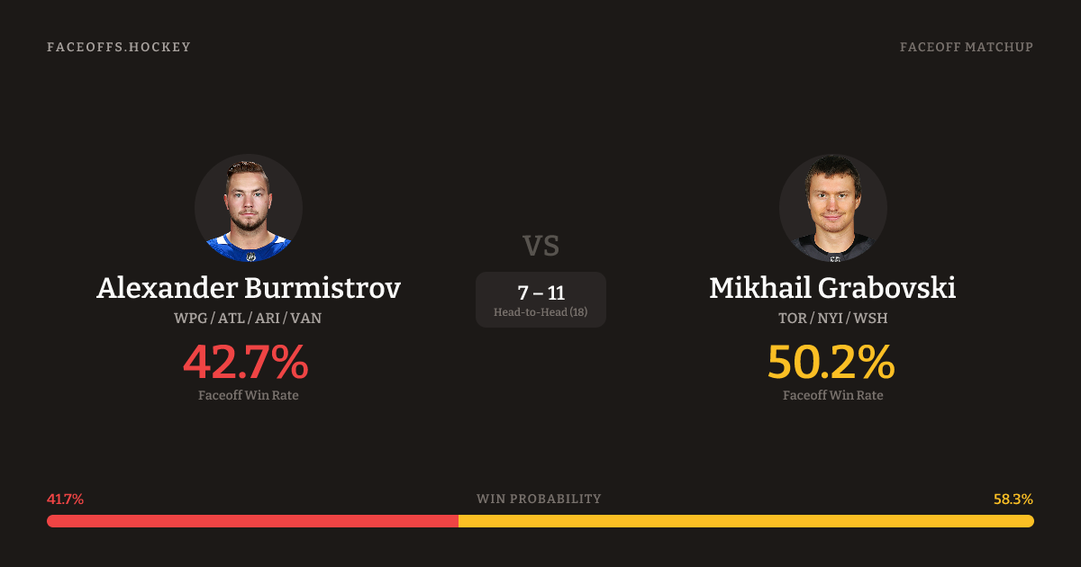 Alexander Burmistrov vs Mikhail Grabovski — Faceoff Head-to-Head