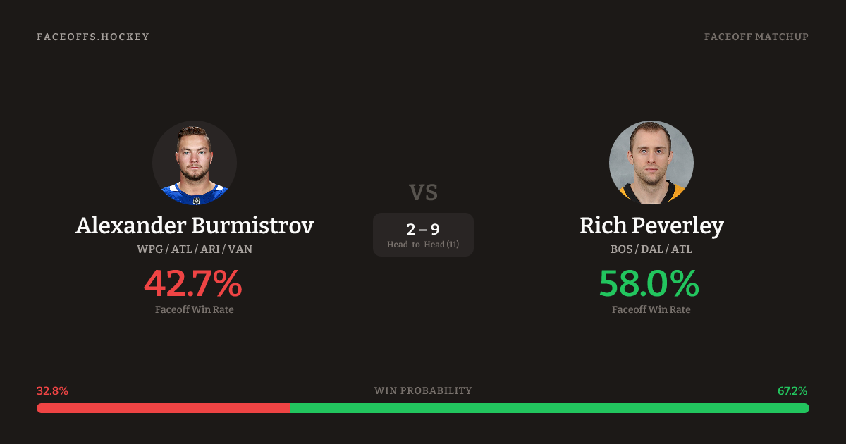 Alexander Burmistrov vs Rich Peverley — Faceoff Head-to-Head