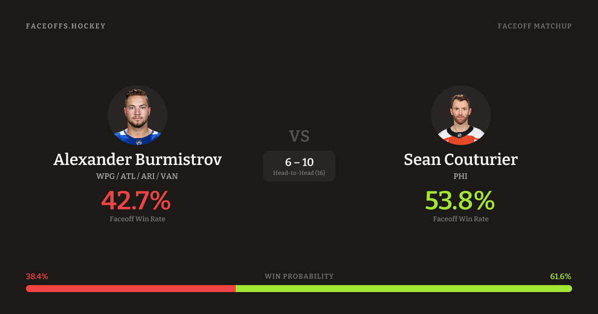 Alexander Burmistrov vs Sean Couturier — Faceoff Head-to-Head