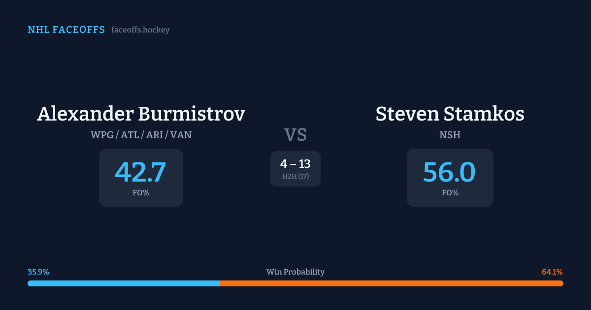 Alexander Burmistrov vs Steven Stamkos — Faceoff Head-to-Head
