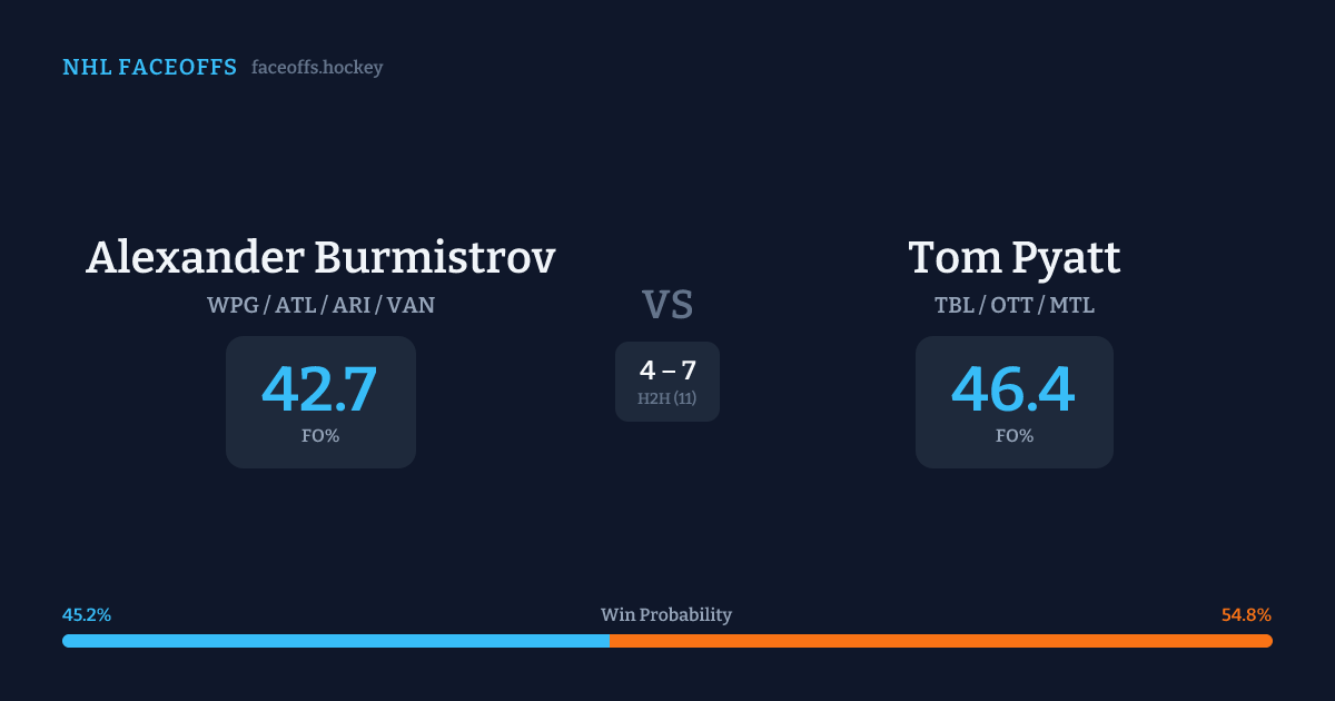 Alexander Burmistrov vs Tom Pyatt — Faceoff Head-to-Head
