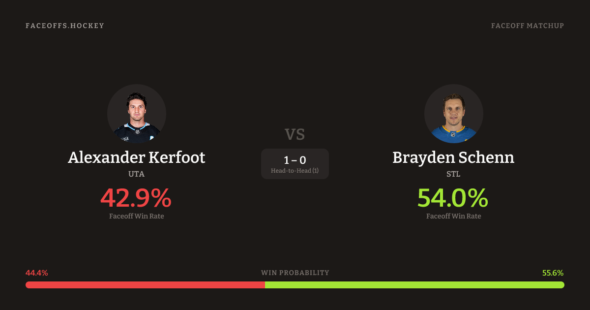 Alexander Kerfoot vs Brayden Schenn — Faceoff Head-to-Head