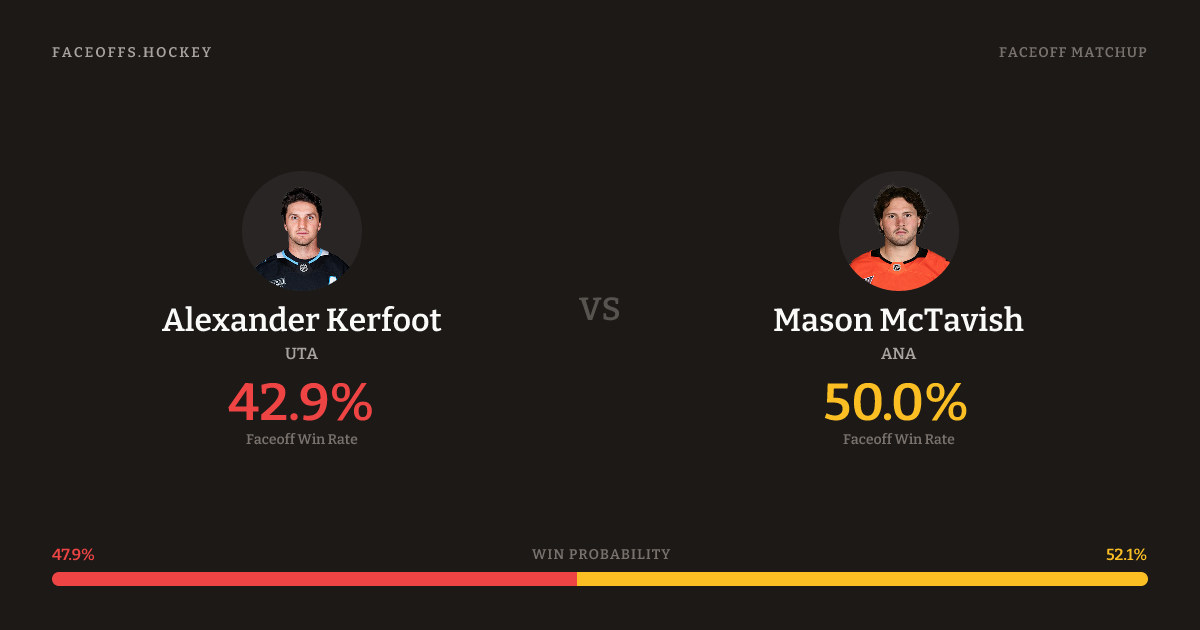 Alexander Kerfoot vs Mason McTavish — Faceoff Head-to-Head