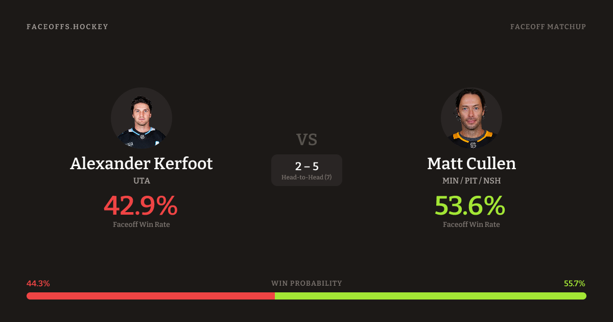 Alexander Kerfoot vs Matt Cullen — Faceoff Head-to-Head