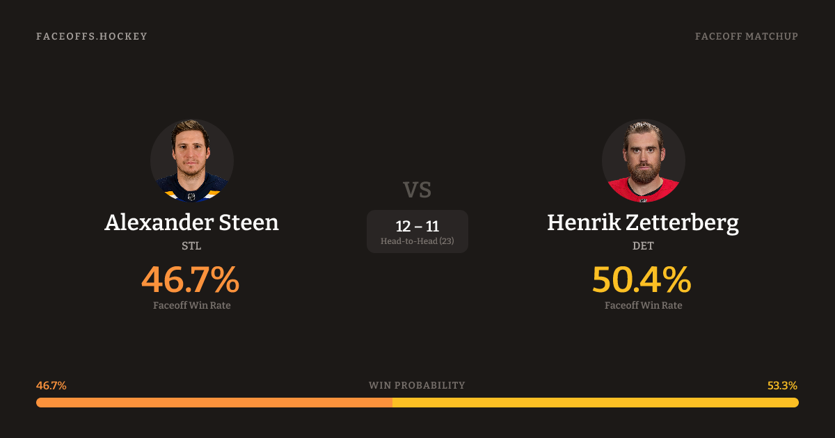 Alexander Steen vs Henrik Zetterberg — Faceoff Head-to-Head