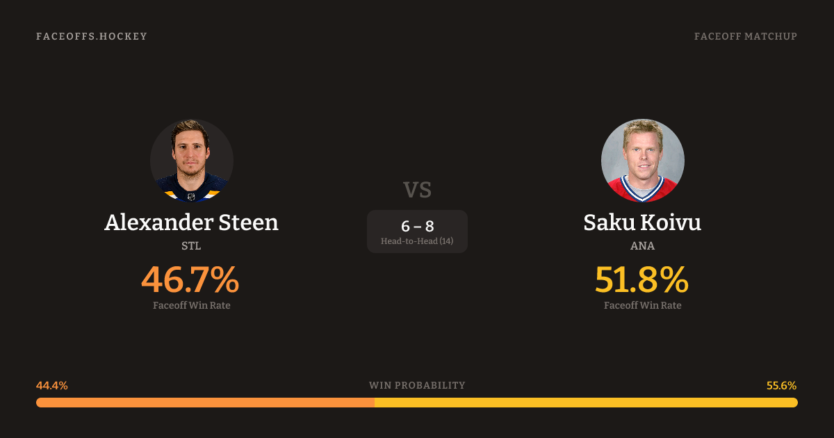 Alexander Steen vs Saku Koivu — Faceoff Head-to-Head