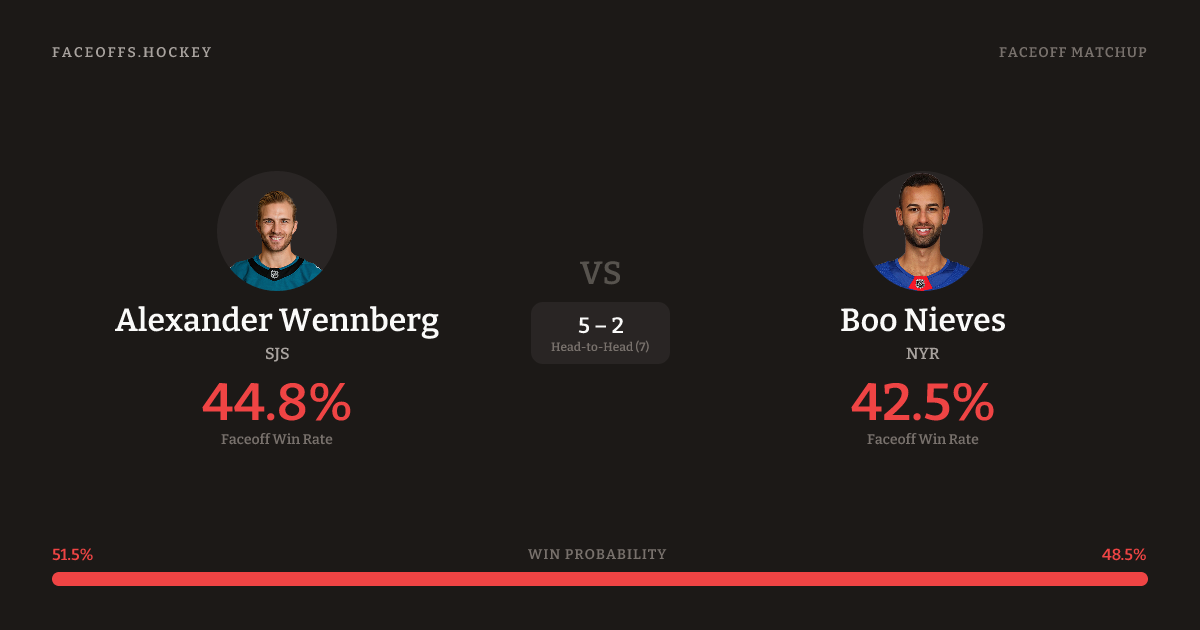 Alexander Wennberg vs Boo Nieves — Faceoff Head-to-Head