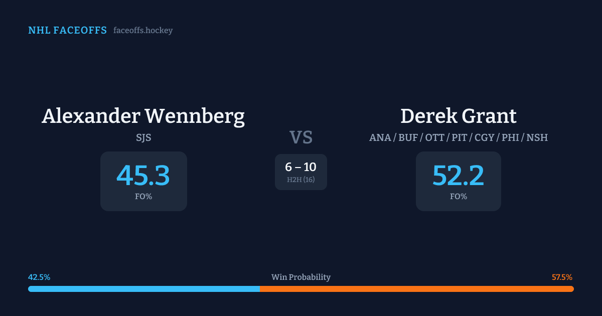 Alexander Wennberg vs Derek Grant — Faceoff Head-to-Head