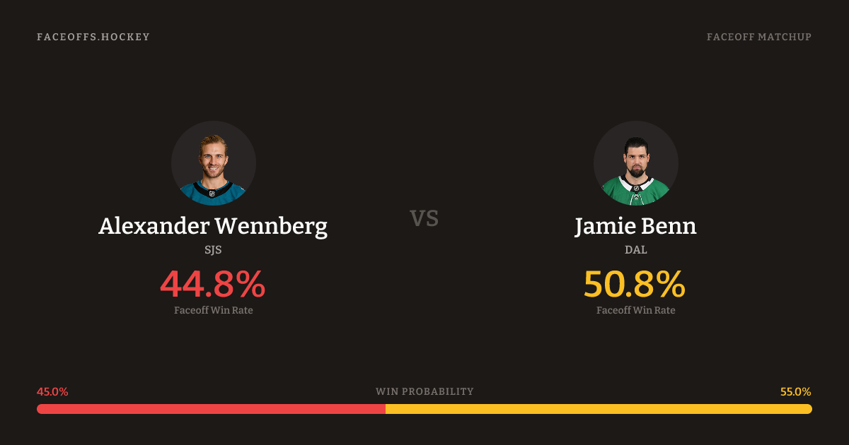 Alexander Wennberg vs Jamie Benn — Faceoff Head-to-Head