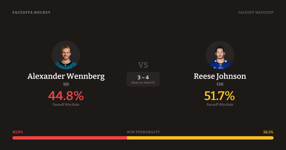 Alexander Wennberg vs Reese Johnson — Faceoff Head-to-Head