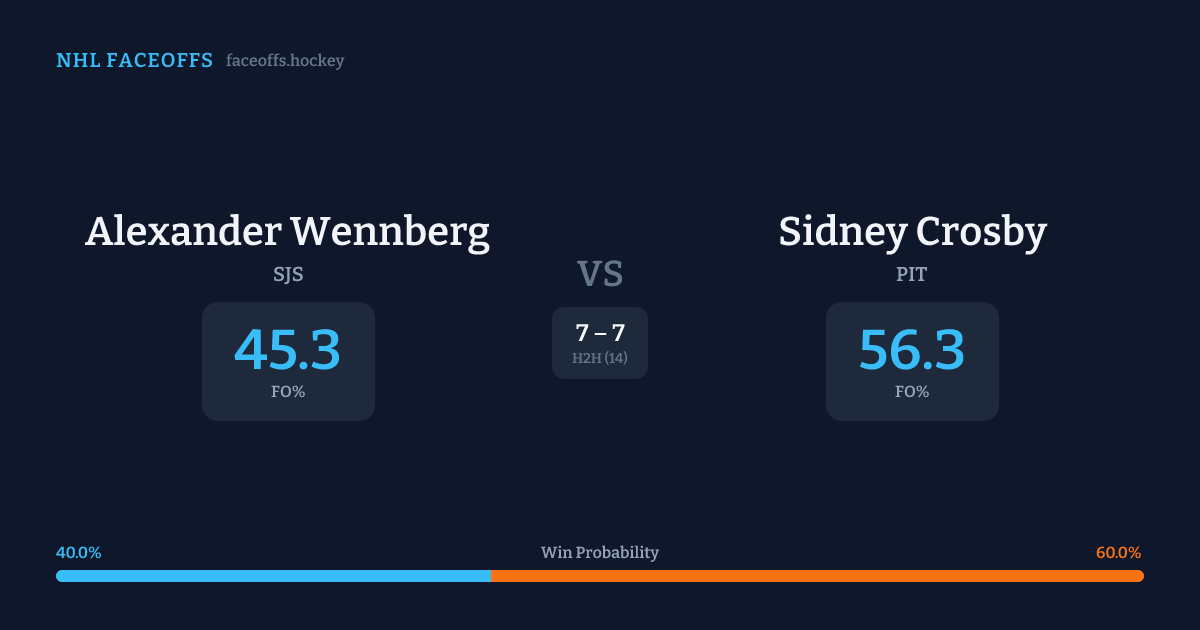 Alexander Wennberg vs Sidney Crosby — Faceoff Head-to-Head