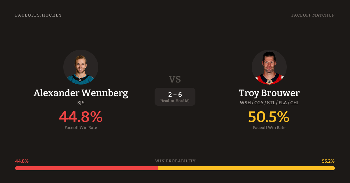 Alexander Wennberg vs Troy Brouwer — Faceoff Head-to-Head