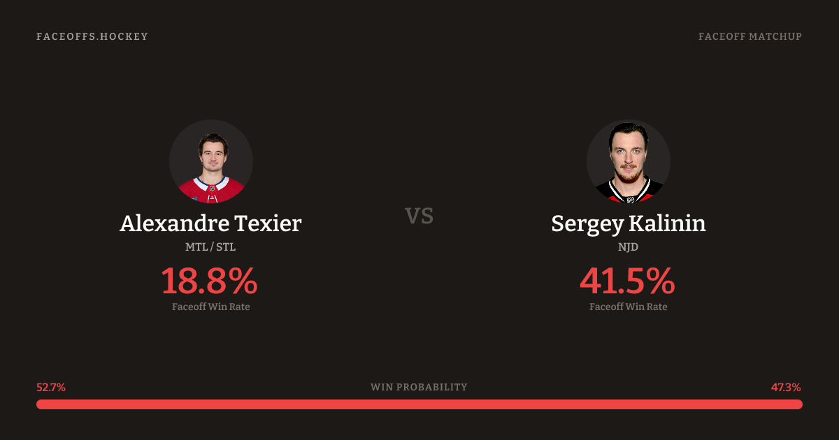 Alexandre Texier vs Sergey Kalinin — Faceoff Head-to-Head