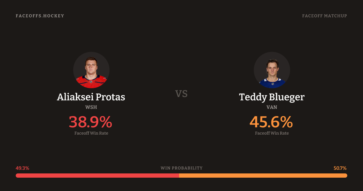 Aliaksei Protas vs Teddy Blueger — Faceoff Head-to-Head
