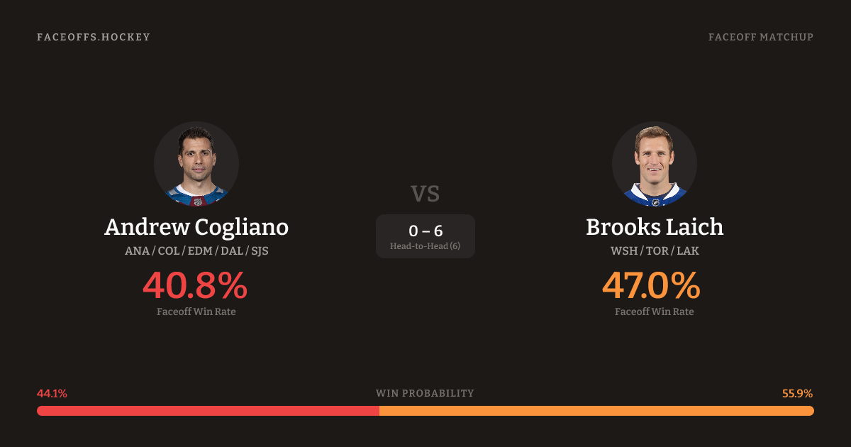 Andrew Cogliano vs Brooks Laich — Faceoff Head-to-Head