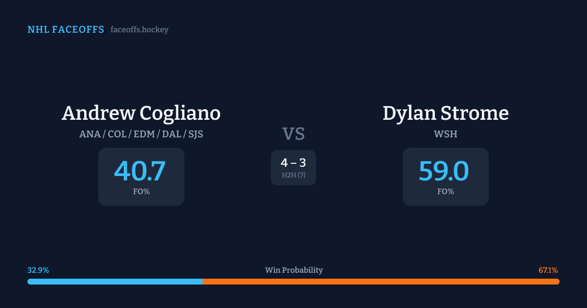 Andrew Cogliano vs Dylan Strome — Faceoff Head-to-Head