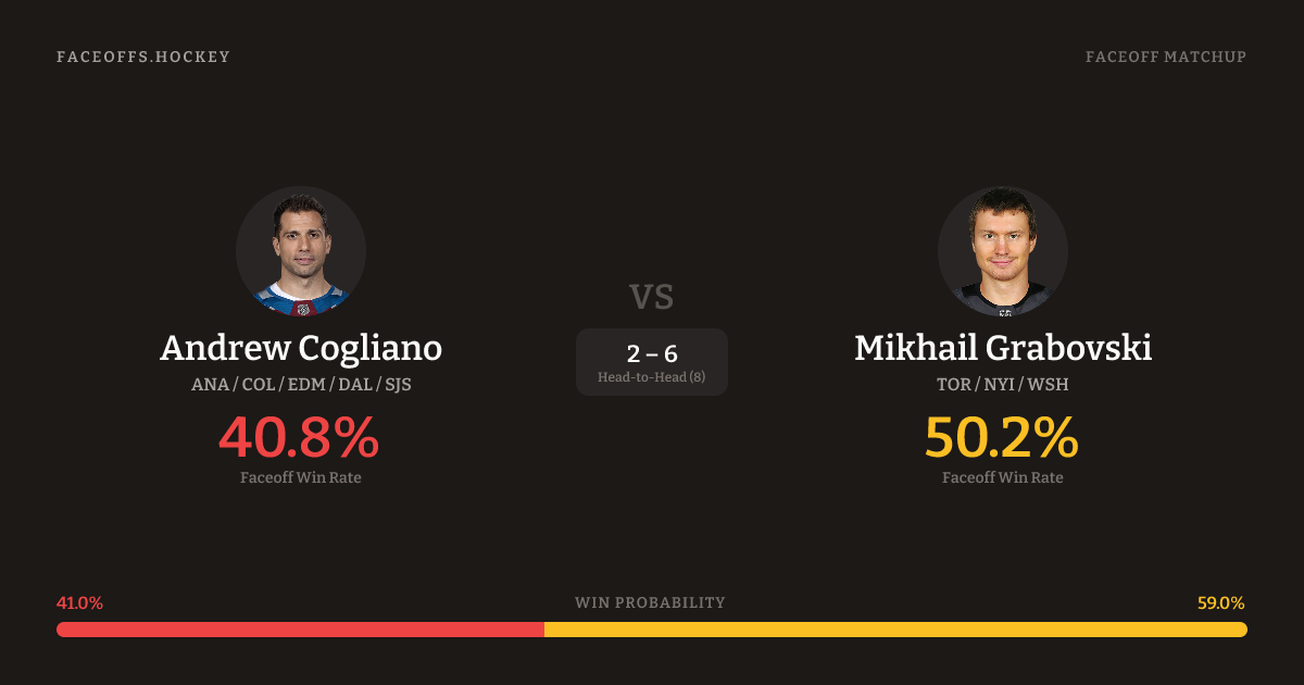 Andrew Cogliano vs Mikhail Grabovski — Faceoff Head-to-Head