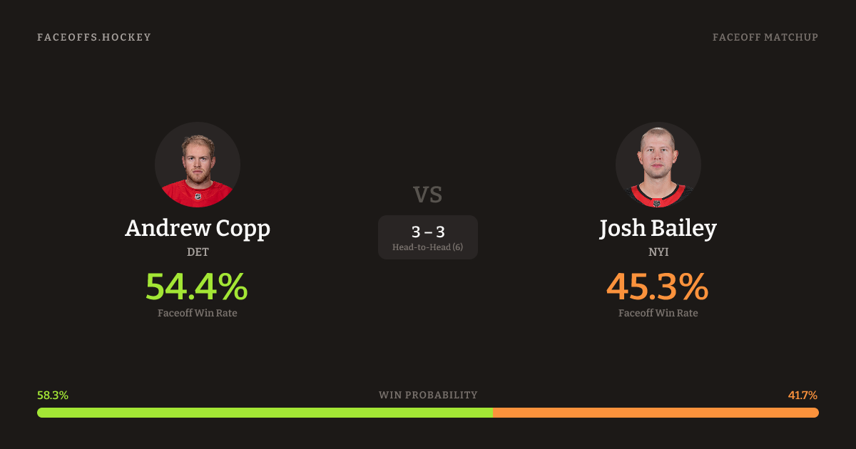 Andrew Copp vs Josh Bailey — Faceoff Head-to-Head