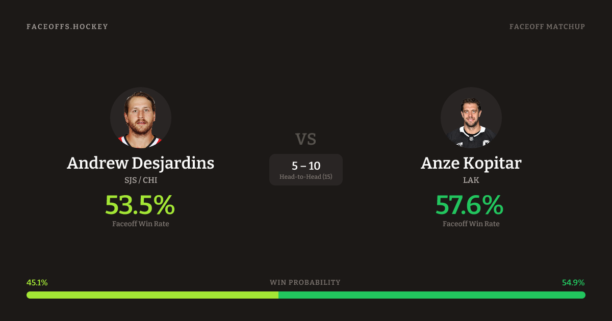 Andrew Desjardins vs Anze Kopitar — Faceoff Head-to-Head