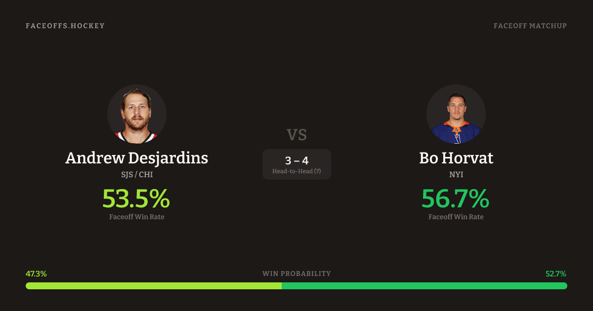 Andrew Desjardins vs Bo Horvat — Faceoff Head-to-Head