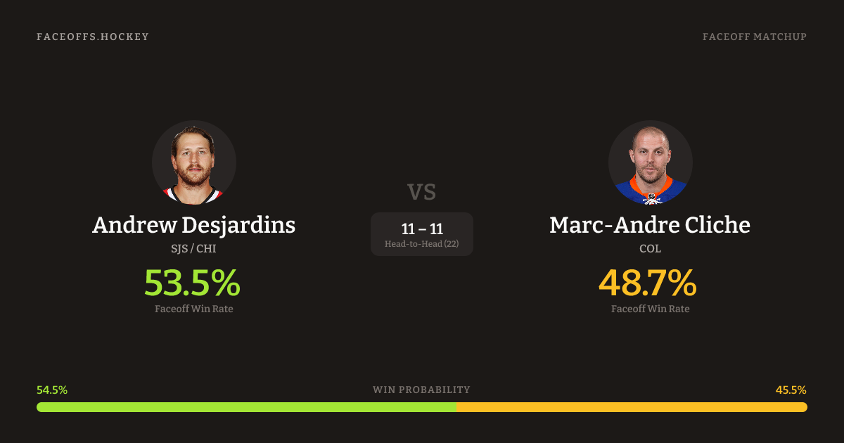 Andrew Desjardins vs Marc-Andre Cliche — Faceoff Head-to-Head