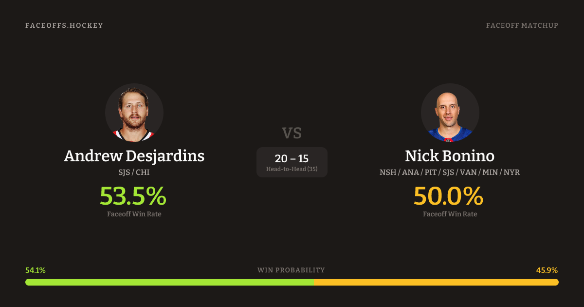 Andrew Desjardins vs Nick Bonino — Faceoff Head-to-Head