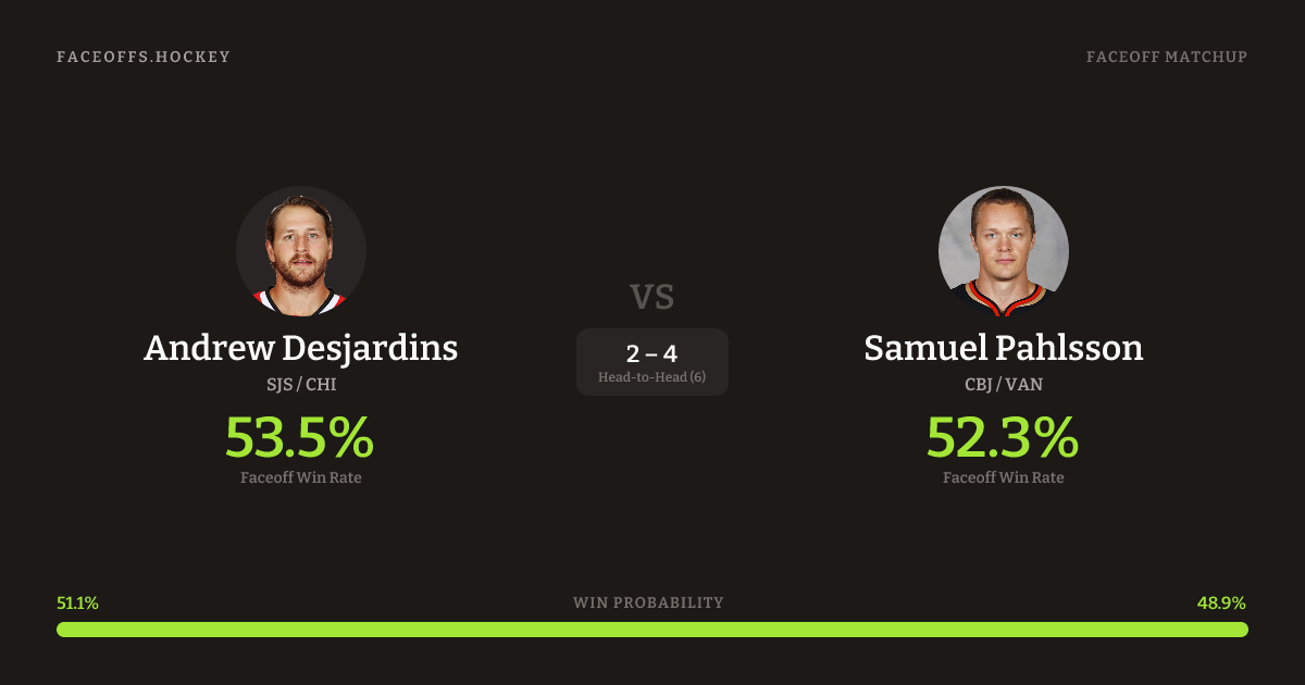 Andrew Desjardins vs Samuel Pahlsson — Faceoff Head-to-Head