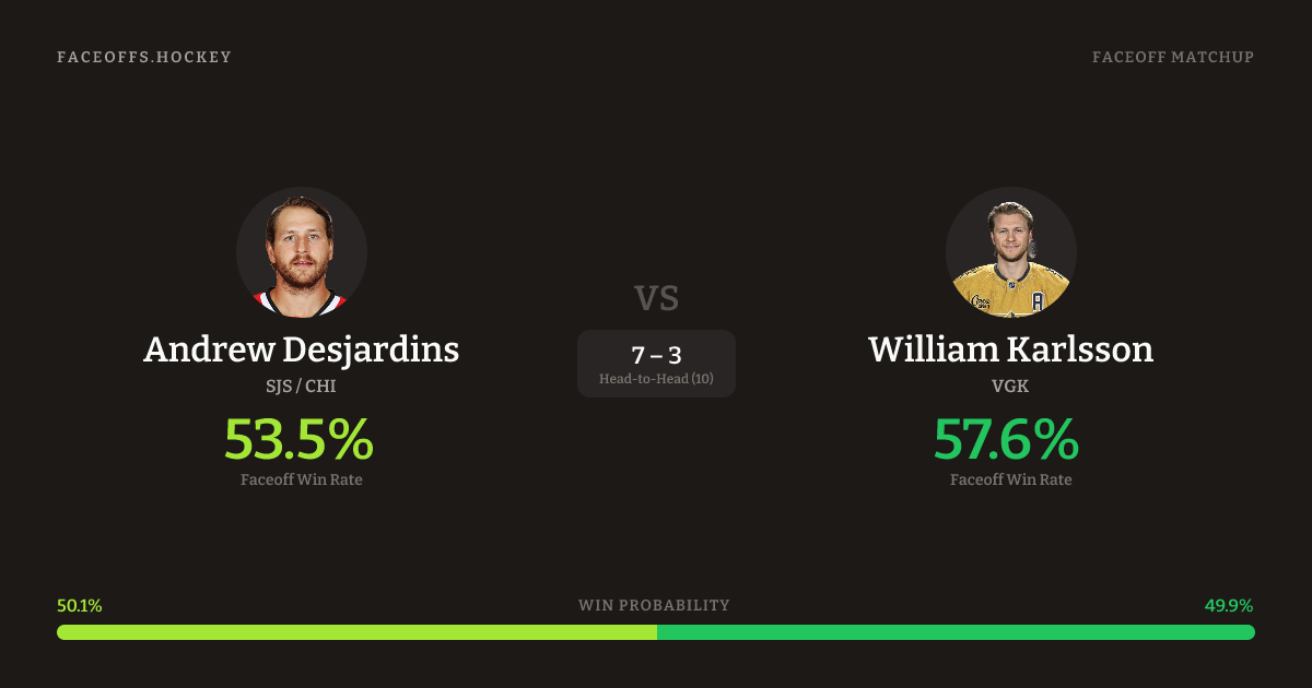 Andrew Desjardins vs William Karlsson — Faceoff Head-to-Head