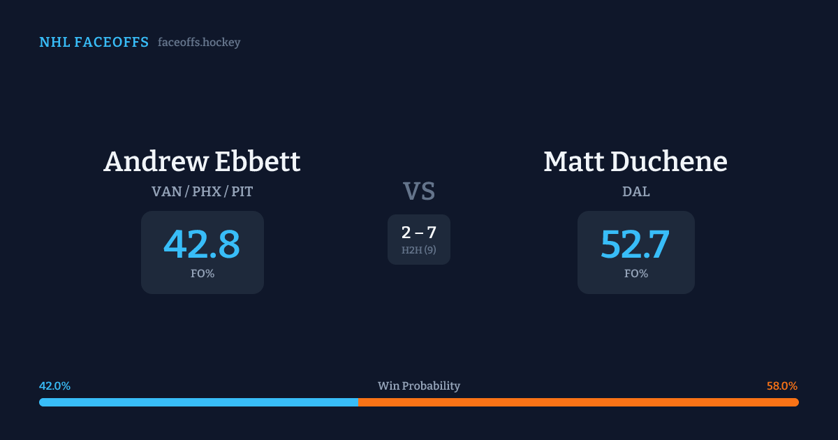 Andrew Ebbett vs Matt Duchene — Faceoff Head-to-Head