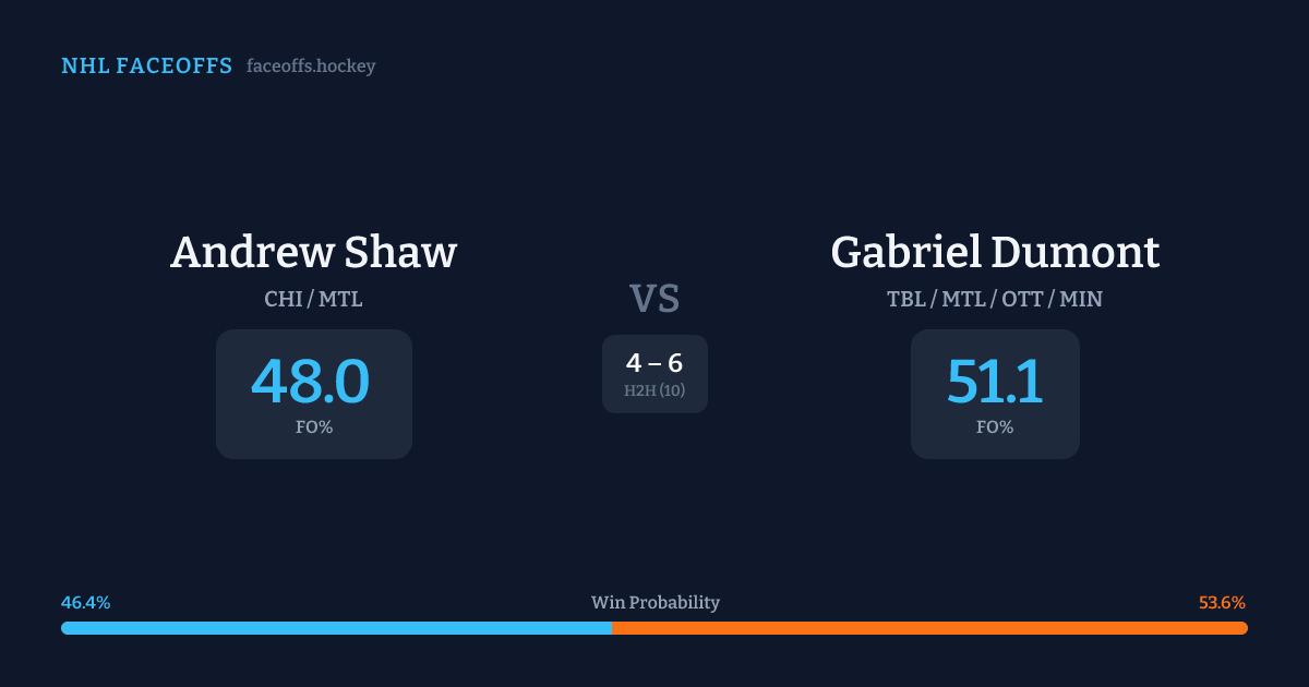 Andrew Shaw vs Gabriel Dumont — Faceoff Head-to-Head