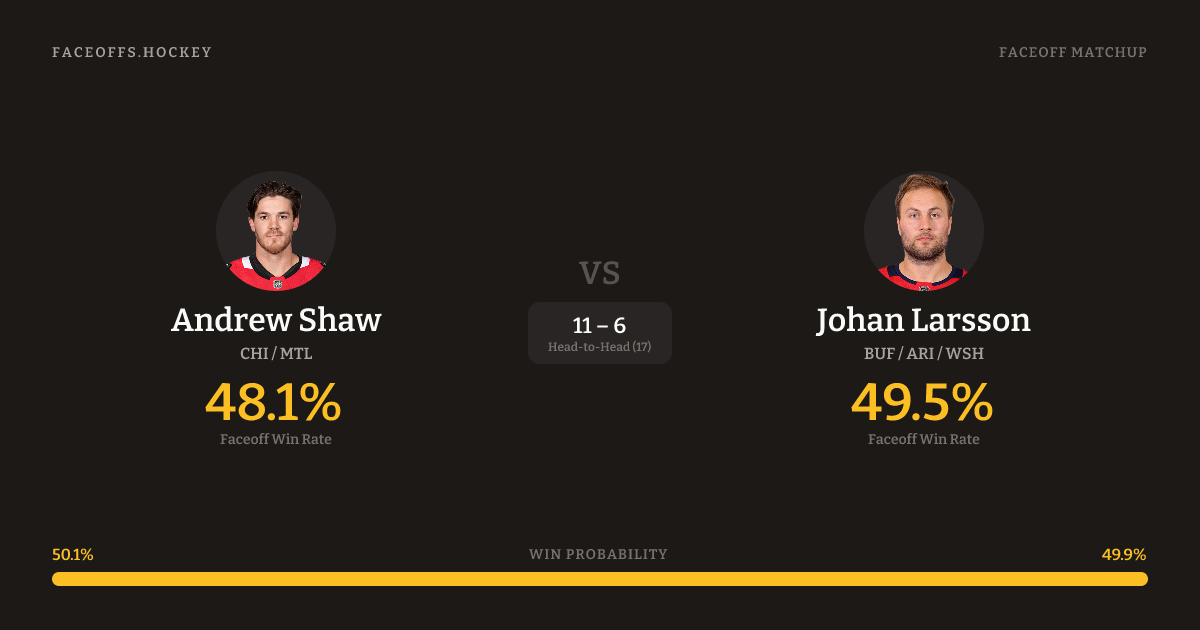 Andrew Shaw vs Johan Larsson — Faceoff Head-to-Head