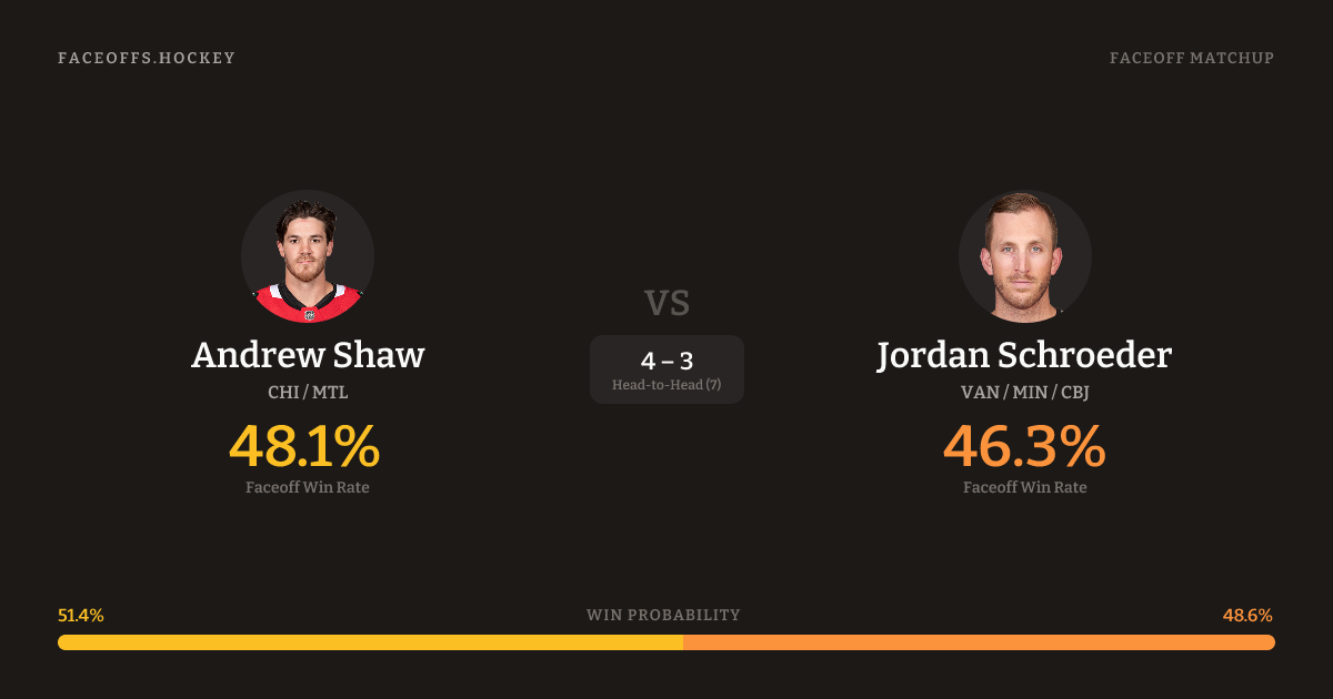 Andrew Shaw vs Jordan Schroeder — Faceoff Head-to-Head