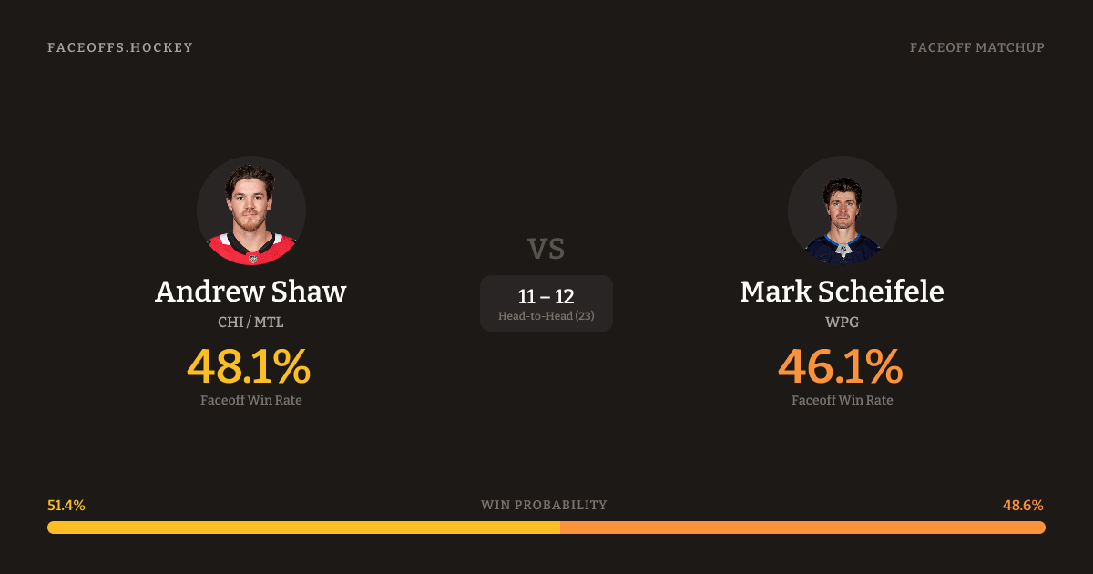 Andrew Shaw holds a +2.3% FO% edge overall.