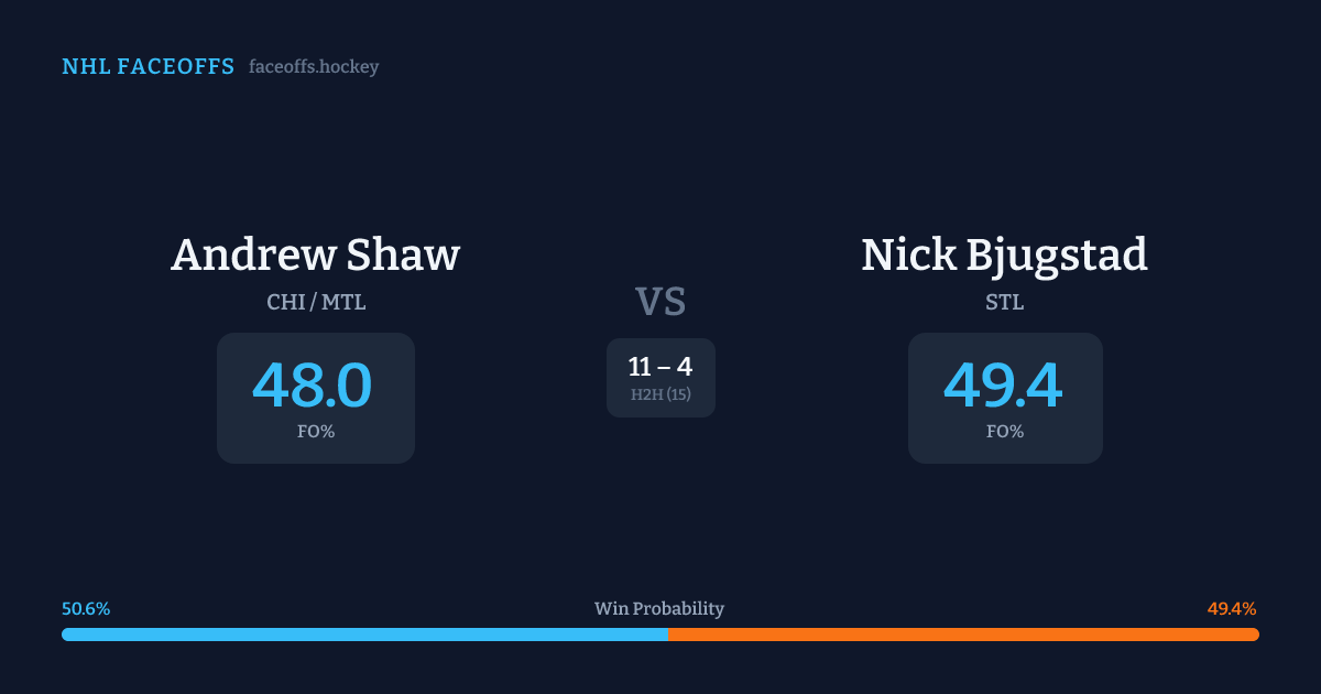 Andrew Shaw vs Nick Bjugstad — Faceoff Head-to-Head