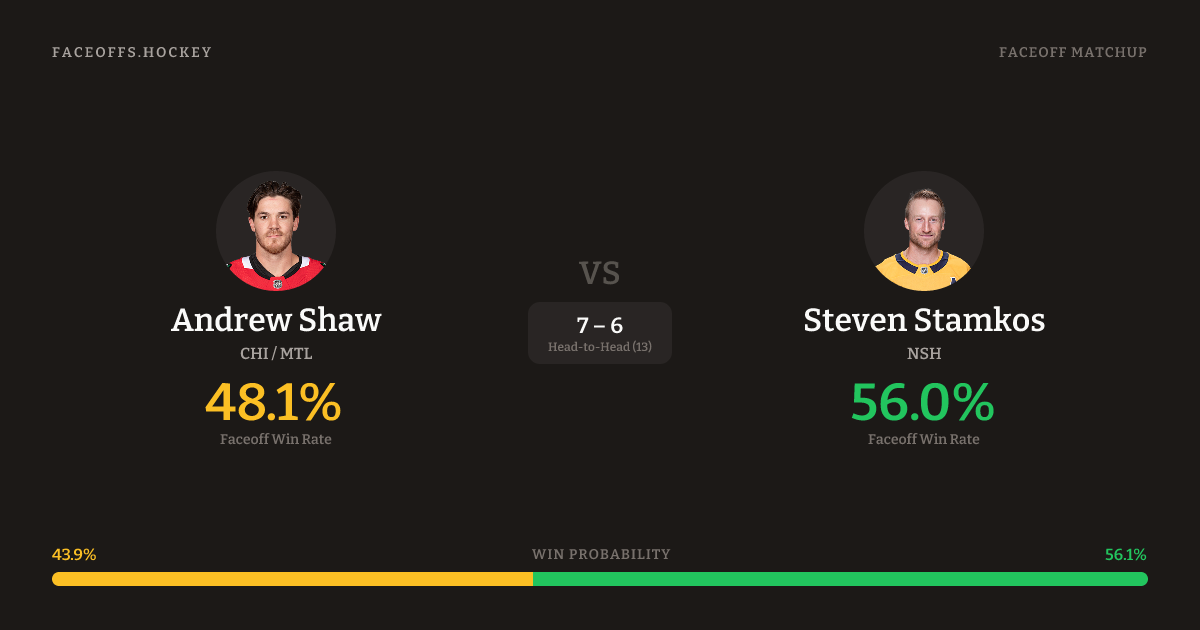 Shaw 47.7% vs Stamkos 52.8% (-6.0%)