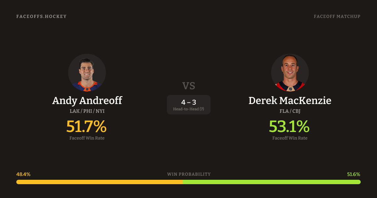 Andy Andreoff vs Derek MacKenzie — Faceoff Head-to-Head