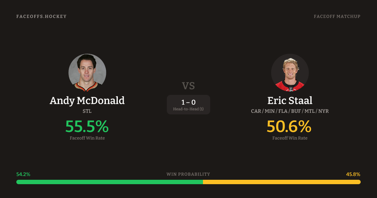 Andy McDonald vs Eric Staal — Faceoff Head-to-Head