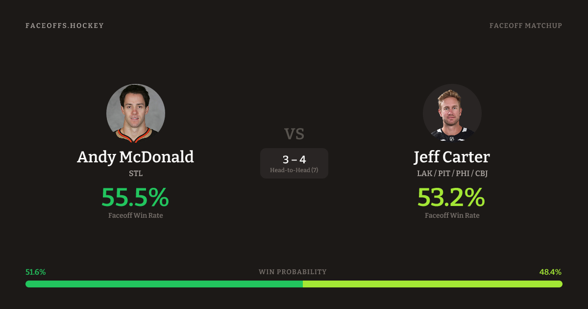 Andy McDonald vs Jeff Carter — Faceoff Head-to-Head