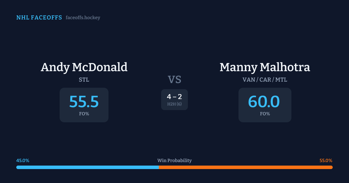 Andy McDonald vs Manny Malhotra — Faceoff Head-to-Head