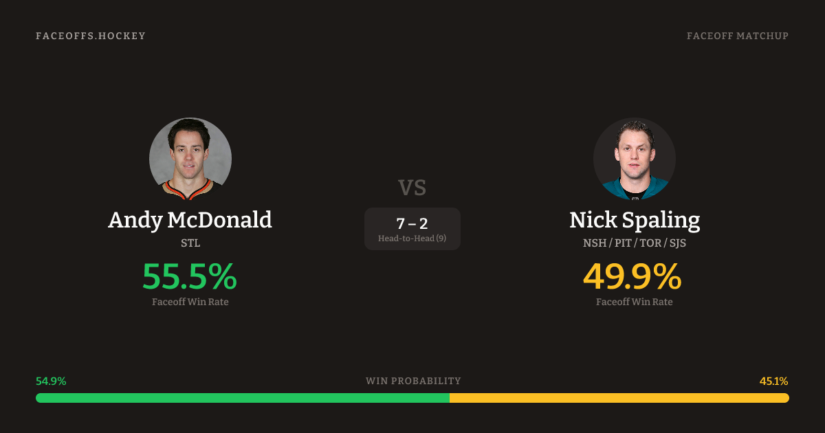 Andy McDonald vs Nick Spaling — Faceoff Head-to-Head