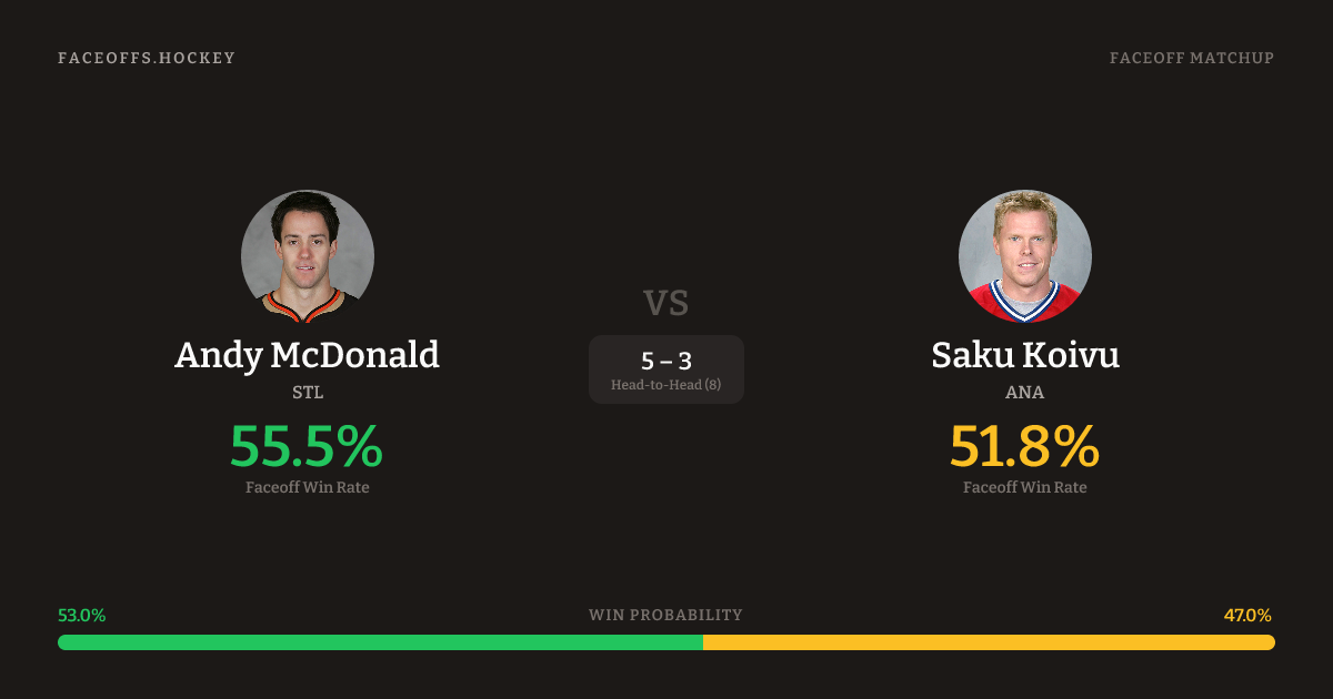 Andy McDonald vs Saku Koivu — Faceoff Head-to-Head