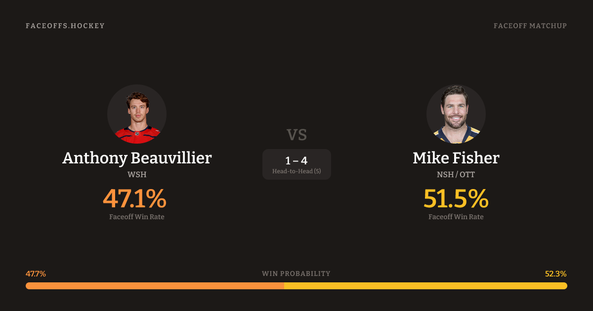 Anthony Beauvillier vs Mike Fisher — Faceoff Head-to-Head