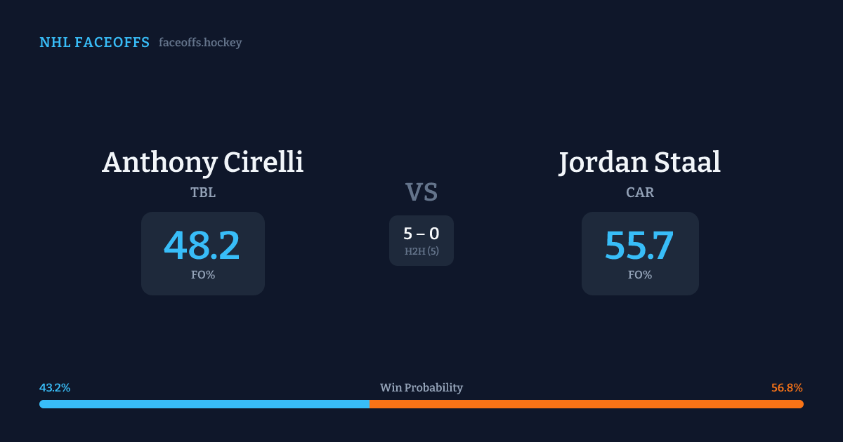Anthony Cirelli vs Jordan Staal — Faceoff Head-to-Head