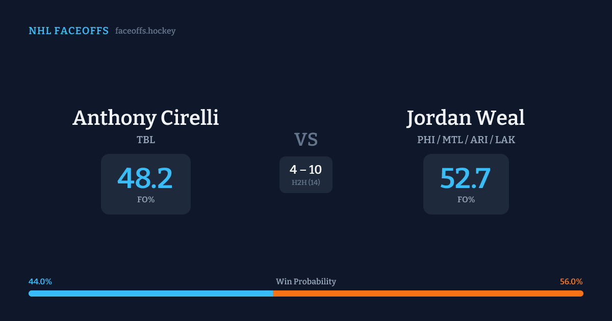 Anthony Cirelli vs Jordan Weal — Faceoff Head-to-Head