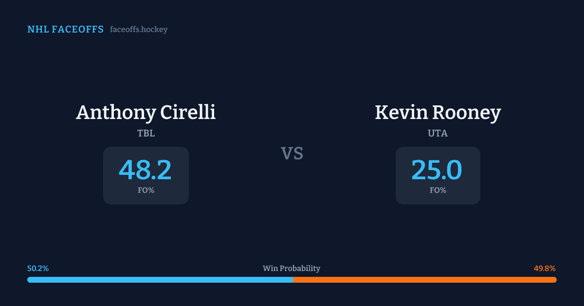 Anthony Cirelli vs Kevin Rooney — Faceoff Head-to-Head