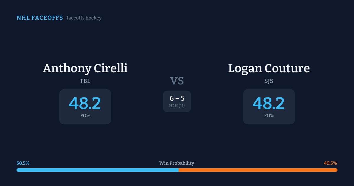 Anthony Cirelli vs Logan Couture — Faceoff Head-to-Head