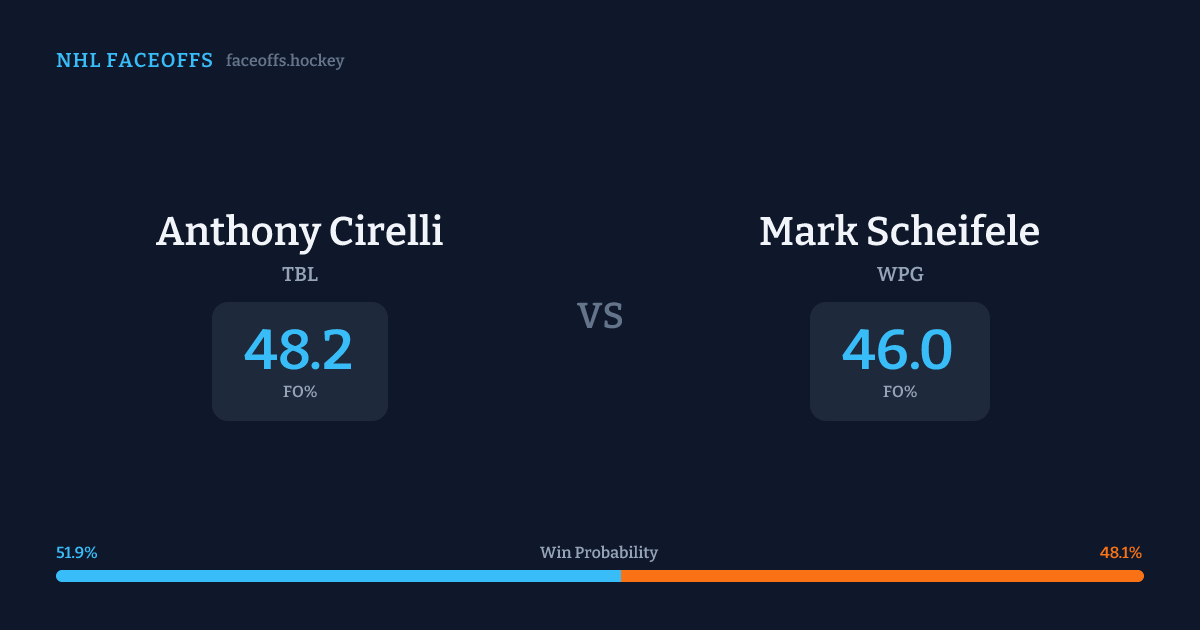 Anthony Cirelli vs Mark Scheifele — Faceoff Head-to-Head