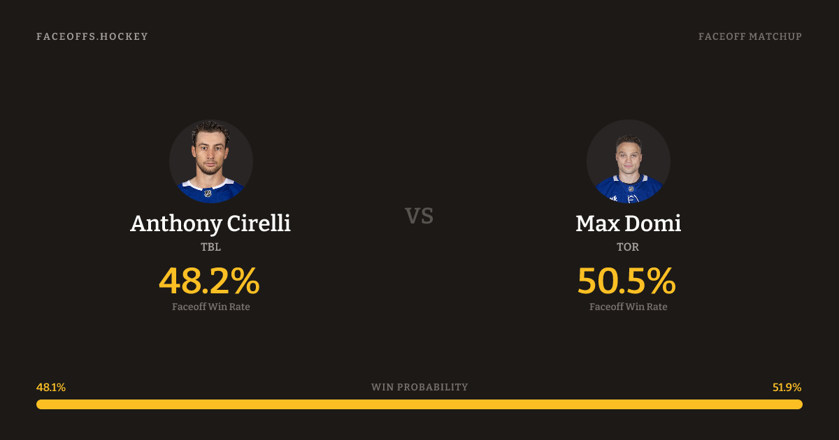 Anthony Cirelli vs Max Domi — Faceoff Head-to-Head