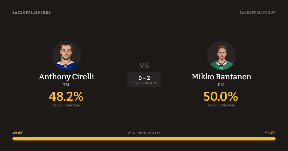 Anthony Cirelli vs Mikko Rantanen — Faceoff Head-to-Head