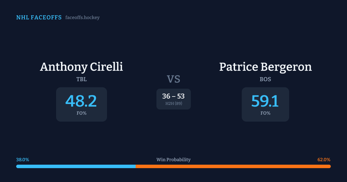 Anthony Cirelli vs Patrice Bergeron — Faceoff Head-to-Head